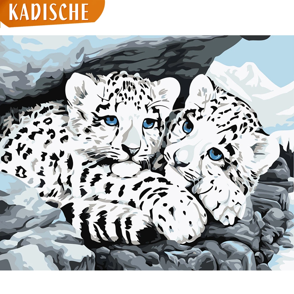 Kadische Lukisan Dengan Angka Pemandangan Diy Minyak Mewarnai Dengan Angka Macan Tutul Salju Kanvas Cat Gambar Seni Dekorasi Rumah Cat Dengan Nomor Aliexpress